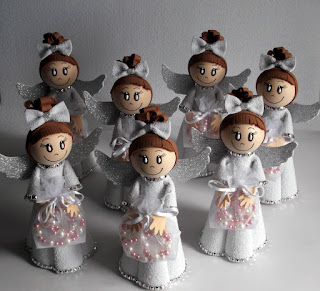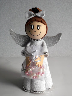 Depois de muito pensar no que havia de fazer para no dia da festa ela oferecer aos seus convidados, resolvi fazer uns anjinhos 3D em EVA com uma dezena. Fiquei muito feliz porque todos gostaram e acharam original!