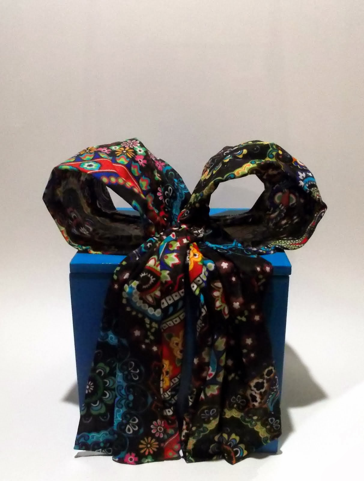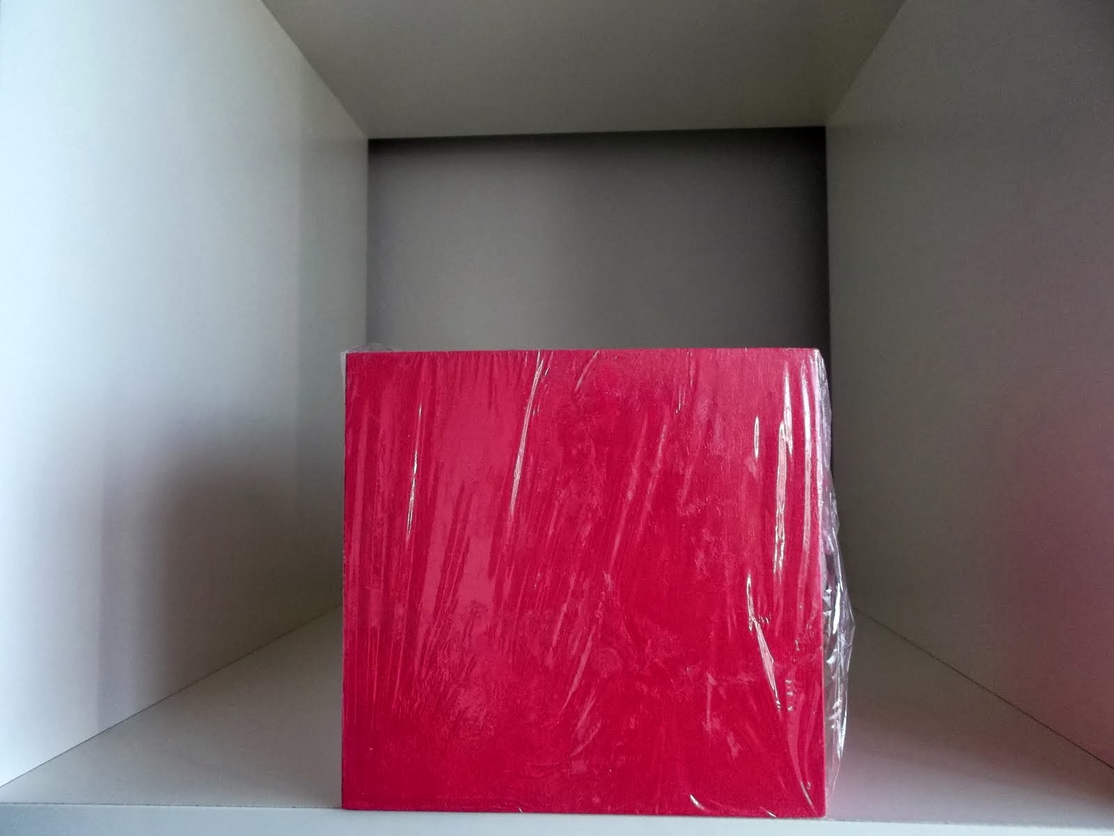 Depois de pintarmos a caixa com uma cor a gosto e de a deixarmos secar, forramos a parte de baixo com papel aderente( como mostra a foto abaixo ) para não sujarmos a caixa quando formos moldar o laço.