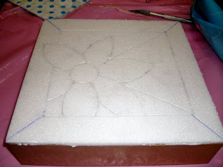 2-Faz-se uma moldura no cartão patch a toda à volta do caixa e no centro desta moldura , risca-se o desenho pretendido.