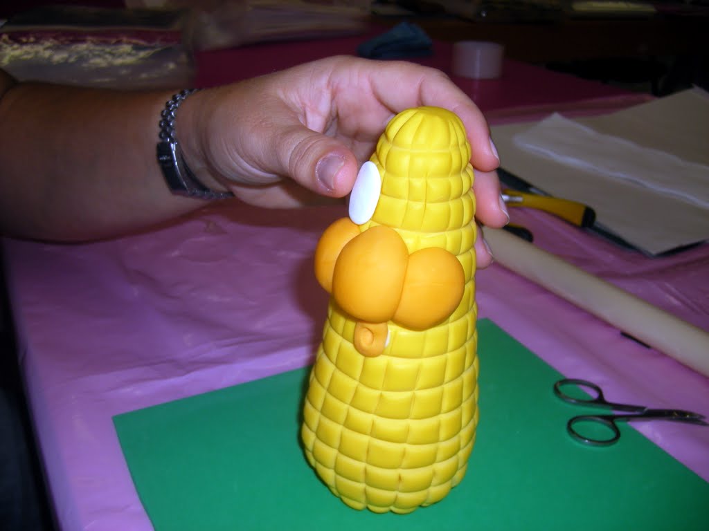 Quando a massaroca estiver bem lisa e sem ar no seu interior, com a ajuda de um teque fazem-se uns cortes no sentido vertical e depois horizontal a toda a volta da massaroca , desenhando assim os grãos de milho, sempre com muito cuidado para não lhe deixarmos marcas indesejadas.
